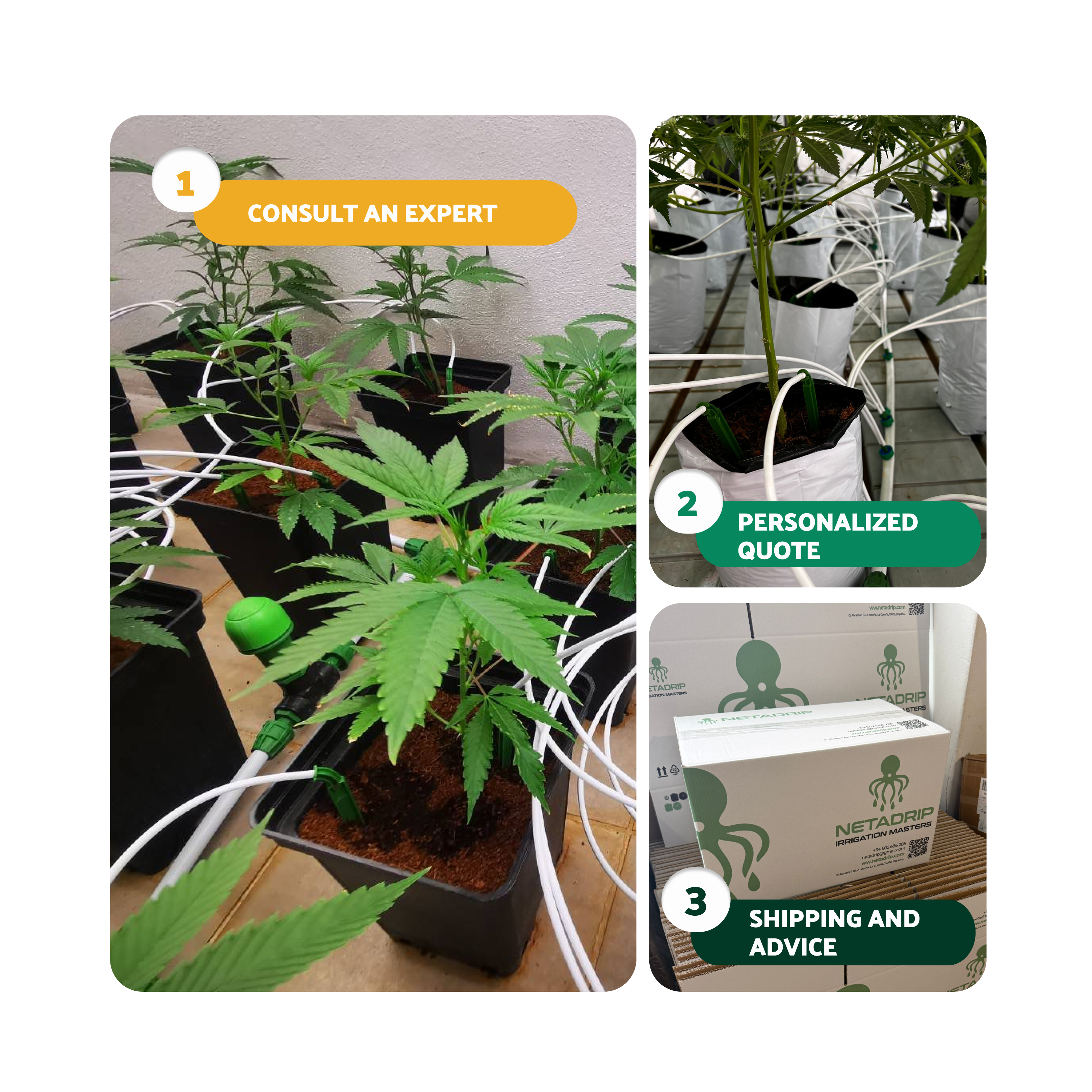 The HYDRA series offers power, precision, and advanced technology, designed for demanding growers managing large grow areas and requiring a fully automatic irrigation system.The PULPO kits are a professional drip irrigation solution for smaller grow spaces, ideal for both experienced growers and beginners looking for a reliable automatic watering system.